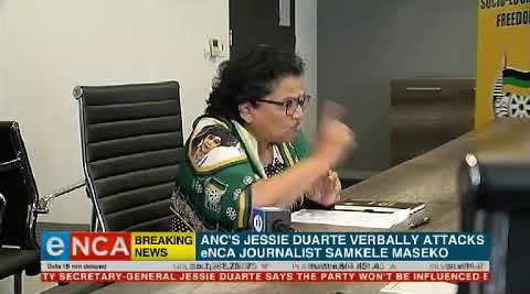 Jessie Duarte, the ANC political party's deputy secretary-general in South Africa, on Tuesday afternoon lashed out in an ugly rant at the eNCA (DStv 403) reporter Samkele Maseko with the shocking verbal tirade that immediately went viral and lead to massive coverage on eNCA as well as SABC News (DStv 404) and across other media in the country.